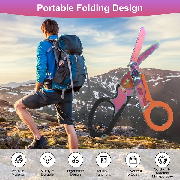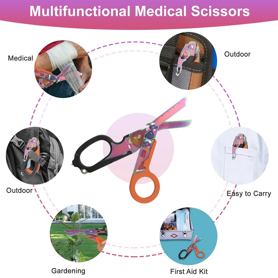 10*20,7 cm/8,1*3,9 poucesOutil de sauvetage multifonction 6 en 1 : ciseaux médicaux multifonctionnels
