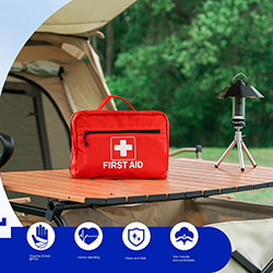 Complet et organisé : contient des fournitures essentielles pour le soin des plaies, des brûlures, des allergies et des traumatismes mineurs, clairement étiquetées et compartimentées pour un accès rapide.